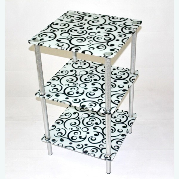 - Код товара: Стеклянная этажерка универсальная 3 русские узоры черно-белые